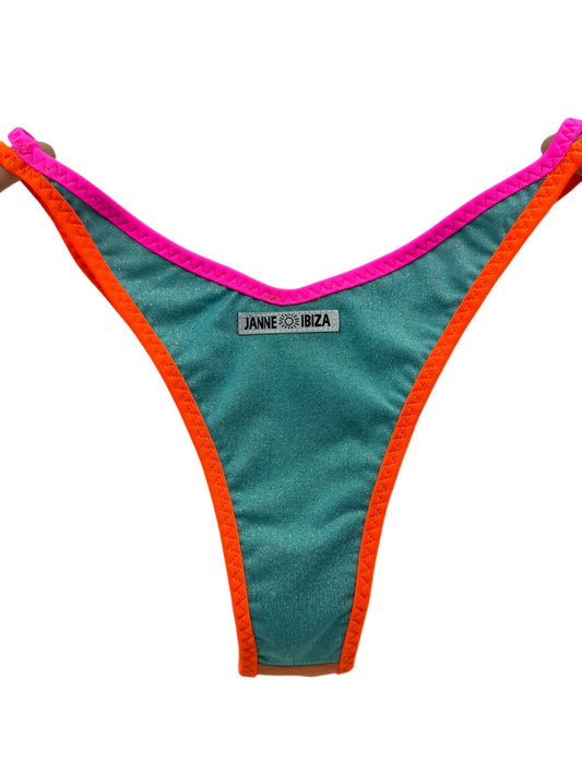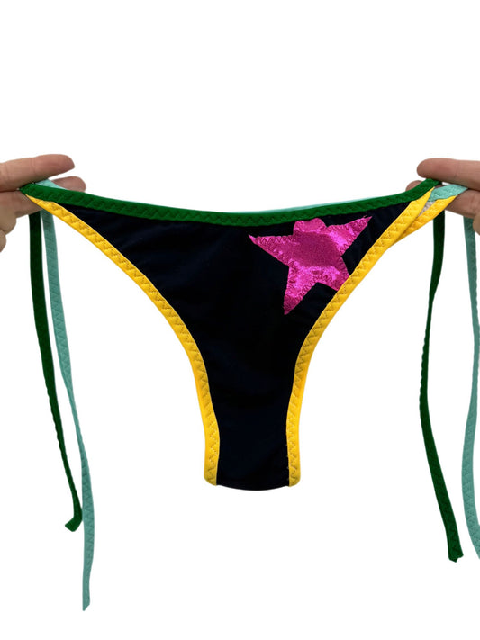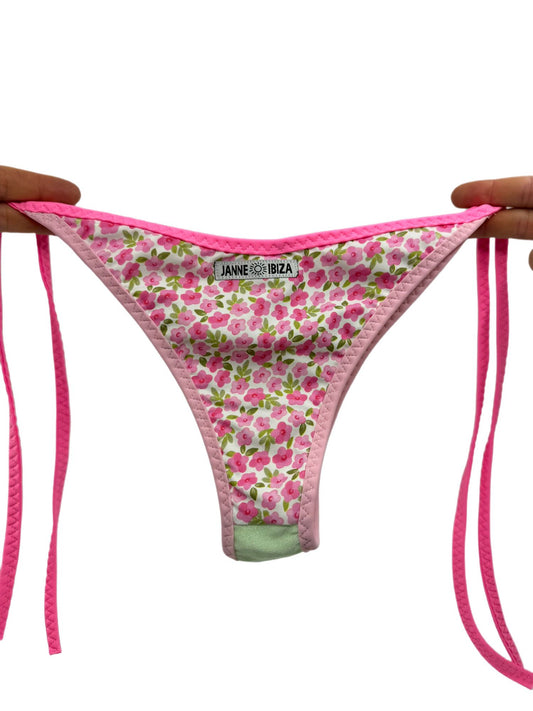 Women's Triangle Thong Pink and Yellow Bikini Bottom 70