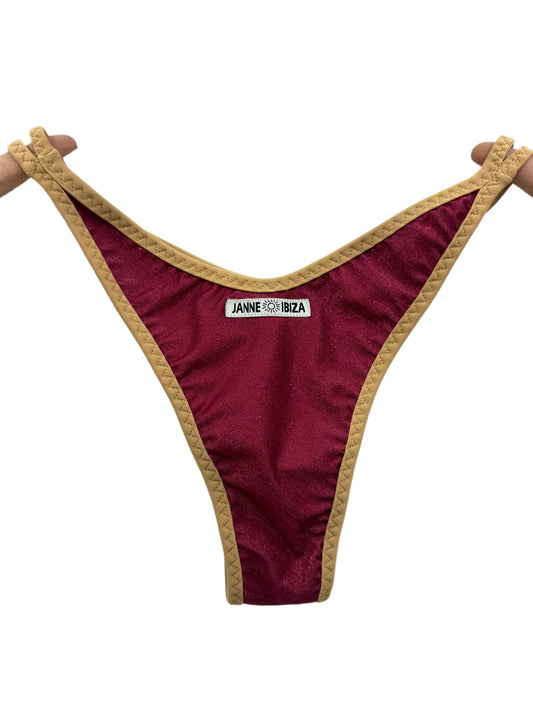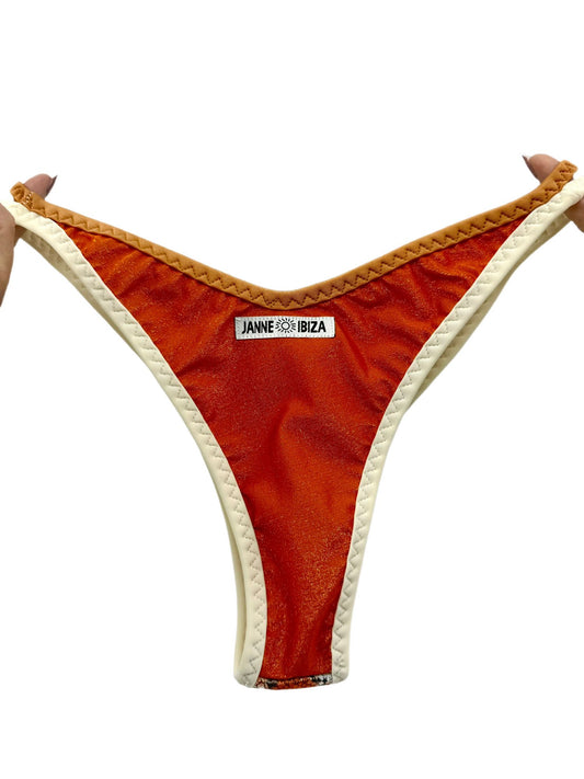 Fire Red with Skin Double Line Women's Sexy High Waist Swimsuit Bikini Set Bottom 40