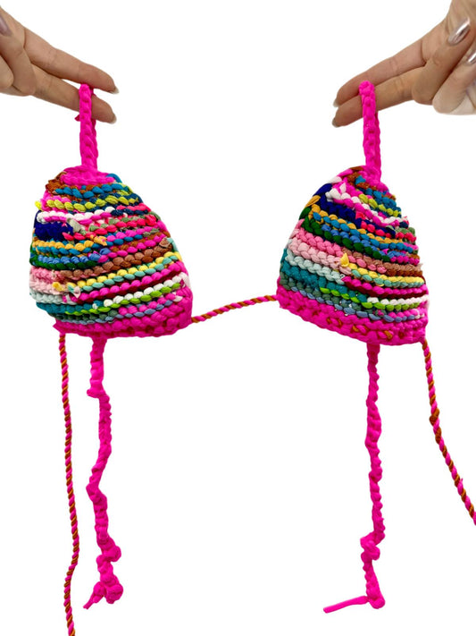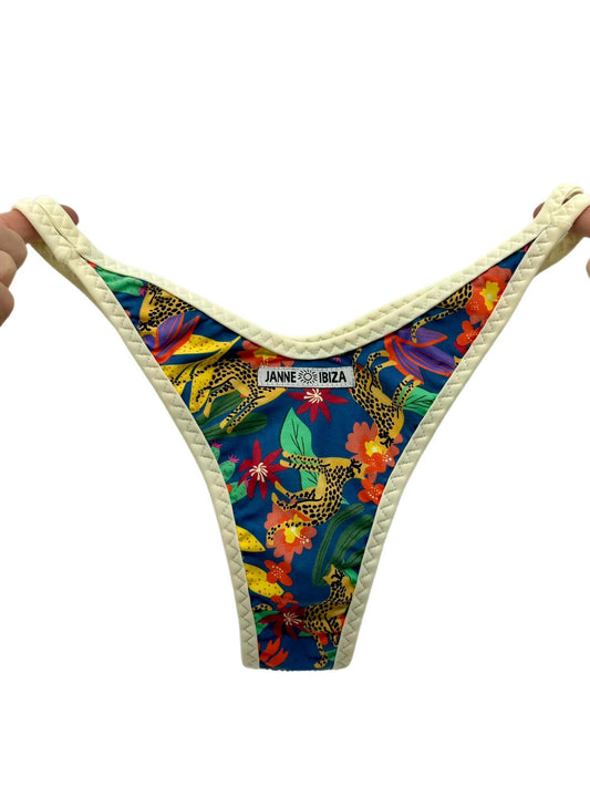 Vibrant Tropical Print Bikini with Quilted Cream Trim Bottom 65