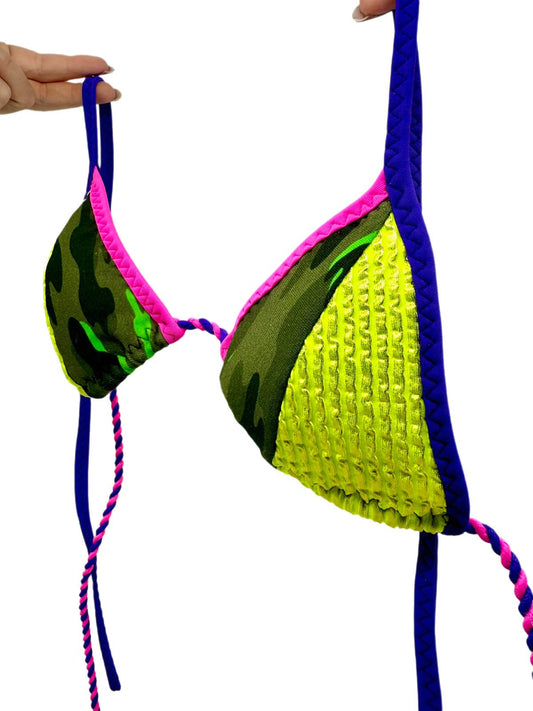 Leopard & Gold Triangle Bikini Top 69 with Contrast Trim