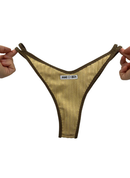 π Gold Shimmer Bikini Bottom 68 with Olive Trim π